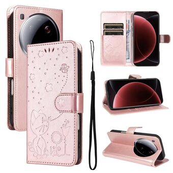 For Xiaomi 15 Ultra 5G Global Cat and Bee Embossed Flip Leather Phone Case(Rose Gold)