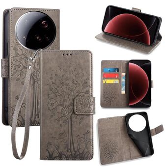 For Xiaomi 15 Ultra Tree & Deer Embossed Leather Phone Case(Grey)