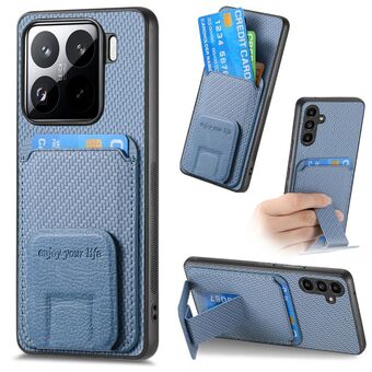 For Xiaomi 15 Carbon Fiber Card Bag Fold Stand Phone Case(Blue)