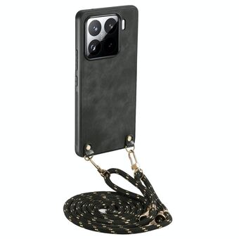 Για Xiaomi 15 εκλεκτής ποιότητας δέρμα PC πίσω κάλυμμα τηλέφωνο υπόθεση με λουράκι σταυρού (μαύρο)