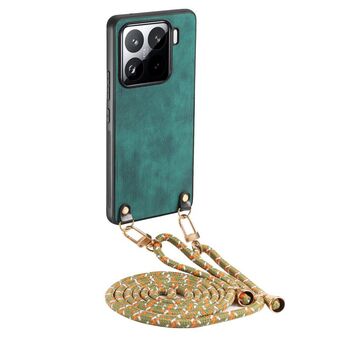Για Xiaomi 15 εκλεκτής ποιότητας δέρμα PC πίσω κάλυμμα τηλέφωνο υπόθεση με λουράκι σταυρού (πράσινο)