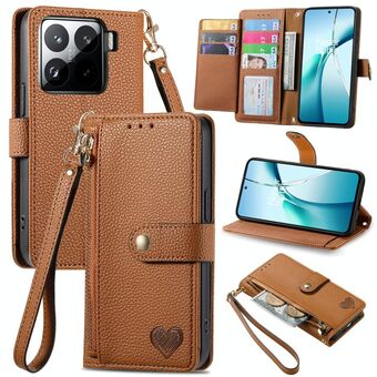Για Xiaomi 15 αγάπη φερμουάρ φερμουάρ δερμάτινη θήκη τηλεφώνου (καφέ)