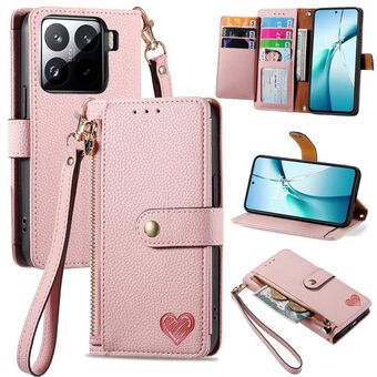 Για Xiaomi 15 αγάπη φερμουάρ φερμουάρ δερμάτινη θήκη τηλεφώνου (ροζ)