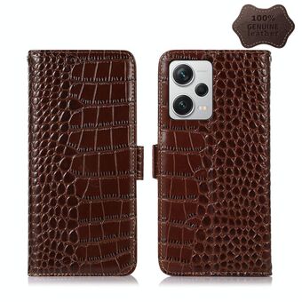 For Xiaomi Redmi Note 12 Pro+ China Magnetic Crocodile Texture Genuine Leather RFID Phone Case(Brown)