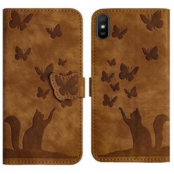 For Xiaomi Redmi 9A Butterfly Cat Embossing Flip Leather Phone Case(Brown)