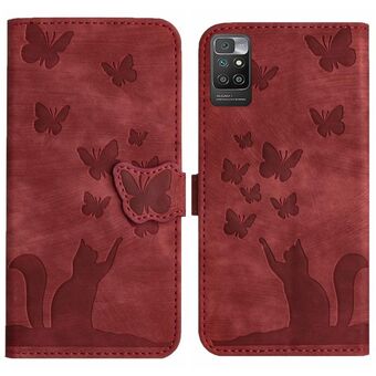 For Xiaomi Redmi 10 Butterfly Cat Embossing Flip Leather Phone Case(Red)