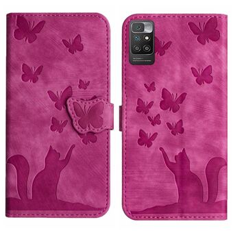 For Xiaomi Redmi 10 Butterfly Cat Embossing Flip Leather Phone Case(Pink)