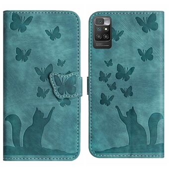 For Xiaomi Redmi 10 Butterfly Cat Embossing Flip Leather Phone Case(Wathet)