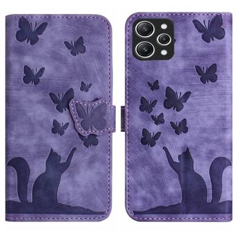 For Xiaomi Redmi 12 4G Butterfly Cat Embossing Flip Leather Phone Case(Purple)