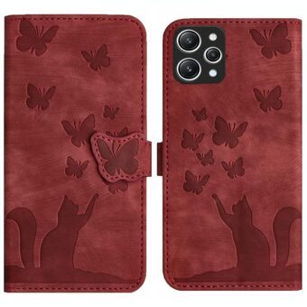 For Xiaomi Redmi 12 4G Butterfly Cat Embossing Flip Leather Phone Case(Red)