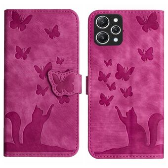 For Xiaomi Redmi 12 4G Butterfly Cat Embossing Flip Leather Phone Case(Pink)