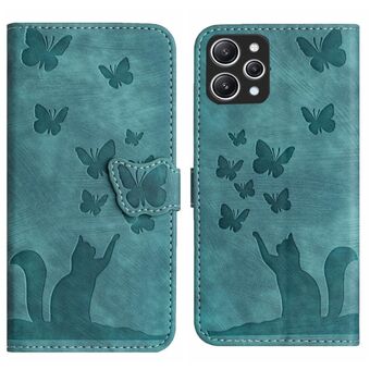 For Xiaomi Redmi 12 4G Butterfly Cat Embossing Flip Leather Phone Case(Wathet)