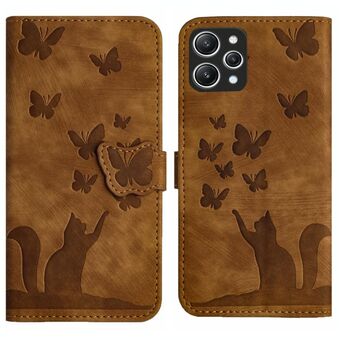 For Xiaomi Redmi 12 4G Butterfly Cat Embossing Flip Leather Phone Case(Brown)