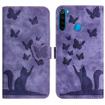 For Xiaomi Redmi Note 8 Butterfly Cat Embossing Flip Leather Phone Case(Purple)