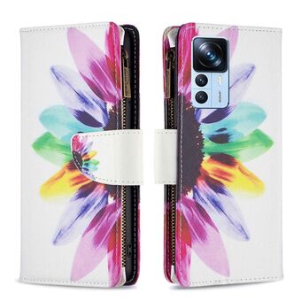 For Xiaomi 12T / 12T Pro / Redmi K50 Ultra Colored Drawing Pattern Zipper Leather Phone Case(Sun Flower)