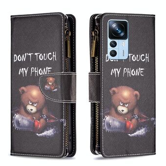 For Xiaomi 12T / 12T Pro / Redmi K50 Ultra Colored Drawing Pattern Zipper Leather Phone Case(Bear)