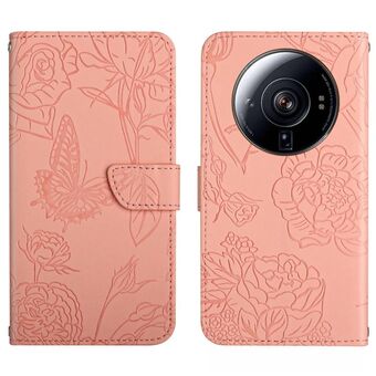 For Xiaomi 12S Ultra Skin Feel Butterfly Peony Embossed Leather Phone Case(Pink)