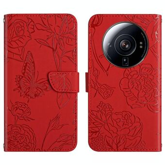 For Xiaomi 12S Ultra Skin Feel Butterfly Peony Embossed Leather Phone Case(Red)