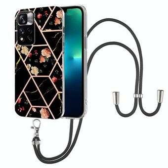 For Xiaomi Redmi Note 11 Pro / Note 11 Pro+ Splicing Marble Flower Pattern TPU Phone Case with Lanyard(Black Flower)