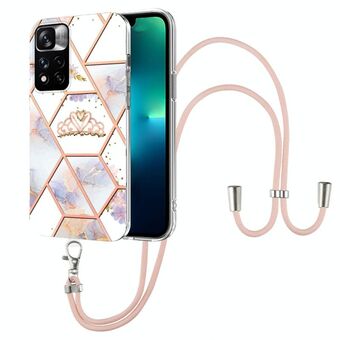 For Xiaomi Redmi Note 11 Pro / Note 11 Pro+ Splicing Marble Flower Pattern TPU Phone Case with Lanyard(Imperial Crown)