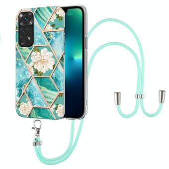 For Xiaomi Redmi Note 11S/Note 11 4G Foreign Splicing Marble Flower Pattern TPU Phone Case with Lanyard(Imperial Crown)