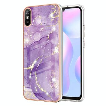 For Xiaomi Redmi 9A Electroplating Marble Pattern Dual-side IMD TPU Shockproof Case(Purple 001)
