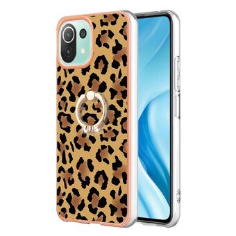 For Xiaomi 11 Lite Electroplating Dual-side IMD Phone Case with Ring Holder(Leopard Print)