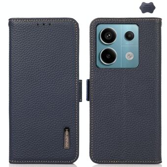 For Xiaomi Redmi Note 13 KHAZNEH Side-Magnetic Litchi Genuine Leather RFID Phone Case(Blue)