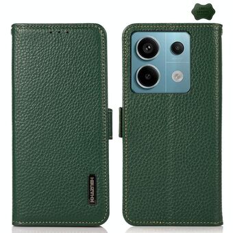 For Xiaomi Redmi Note 13 KHAZNEH Side-Magnetic Litchi Genuine Leather RFID Phone Case(Green)