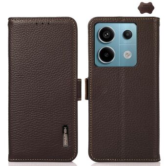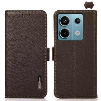 For Xiaomi Redmi Note 13 KHAZNEH Side-Magnetic Litchi Genuine Leather RFID Phone Case(Brown)