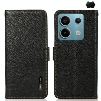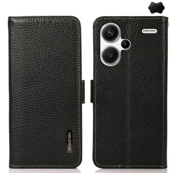 For Xiaomi Redmi Note 13 KHAZNEH Side-Magnetic Litchi Genuine Leather RFID Phone Case(Black)