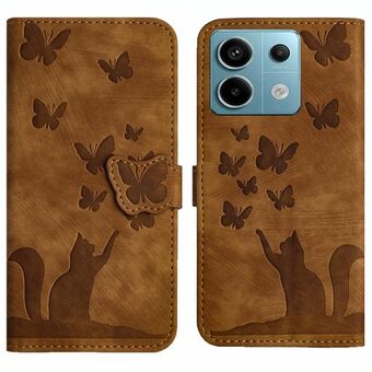 For Xiaomi Redmi Note 13 Pro 5G Butterfly Cat Embossing Flip Leather Phone Case(Brown)