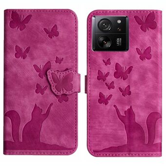 For Xiaomi 13T / 13T Pro 5G Butterfly Cat Embossing Flip Leather Phone Case(Pink)