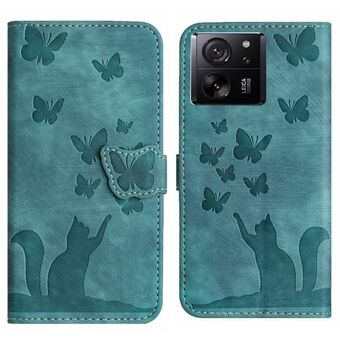 For Xiaomi 13T / 13T Pro 5G Butterfly Cat Embossing Flip Leather Phone Case(Wathet)