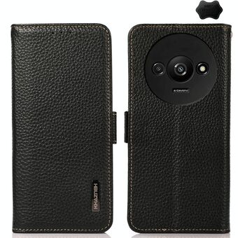 For Xiaomi Redmi A3 KHAZNEH Side-Magnetic Litchi Genuine Leather RFID Phone Case(Black)
