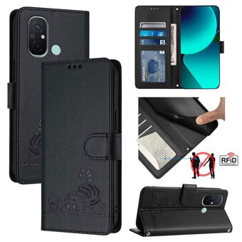 For Xiaomi Redmi 12C Cat Rat Embossed Pattern RFID PU Phone Case with Wrist Strap(Black)