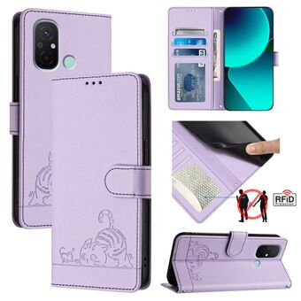 For Xiaomi Redmi 12C Cat Rat Embossed Pattern RFID PU Phone Case with Wrist Strap(Purple)