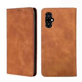 For Xiaomi Poco M4 5G Skin Feel Magnetic Flip Leather Phone Case(Light Brown)