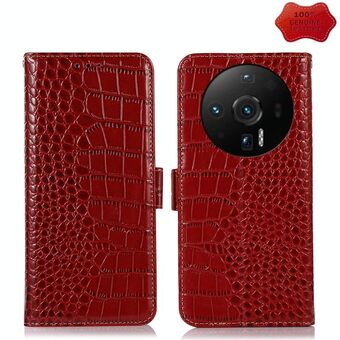 For Xiaomi 12S Ultra Crocodile Top Layer Cowhide Leather Phone Case(Brown)