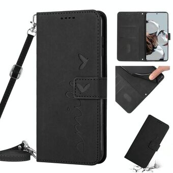 For Xiaomi 12T/12T Pro/Redmi K50 Ultra Skin Feel Heart Pattern Leather Phone Case with Lanyard(Black)