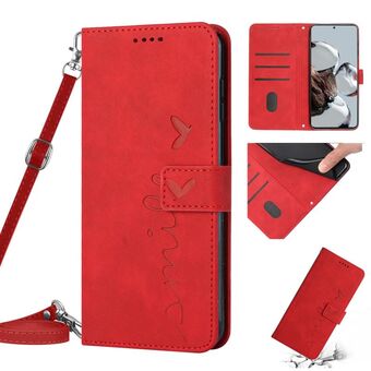 For Xiaomi Poco M4 5G Skin Feel Heart Pattern Leather Phone Case with Lanyard(Red)