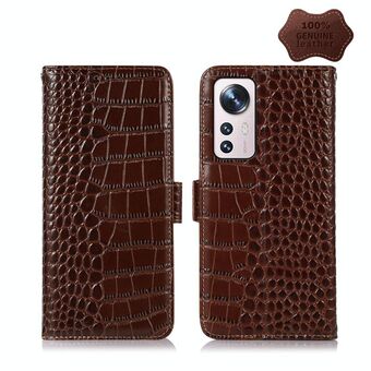 For Xiaomi 12 Lite Crocodile Top Layer Cowhide Leather Phone Case(Brown)