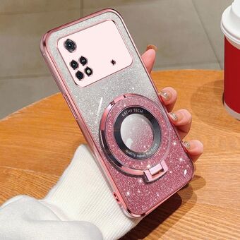 For Xiaomi Poco M4 Pro Plated Gradient Glitter Round Holder TPU Phone Case(Pink)