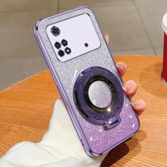 For Xiaomi Poco M4 Pro Plated Gradient Glitter Round Holder TPU Phone Case(Purple)