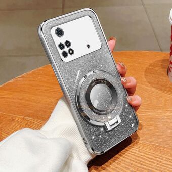For Xiaomi Poco M4 Pro Plated Gradient Glitter Round Holder TPU Phone Case(Silver)