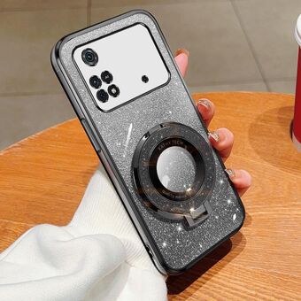 For Xiaomi Poco M4 Pro Plated Gradient Glitter Round Holder TPU Phone Case(Black)