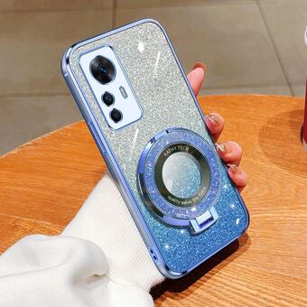 For Xiaomi 12T Pro Plated Gradient Glitter Round Holder TPU Phone Case(Sierra Blue)
