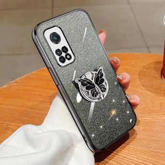 For Redmi K30S / K30S Ultra Plated Gradient Glitter Butterfly Holder TPU Phone Case(Black)