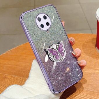 For Redmi K30 Pro Plated Gradient Glitter Butterfly Holder TPU Phone Case(Purple)