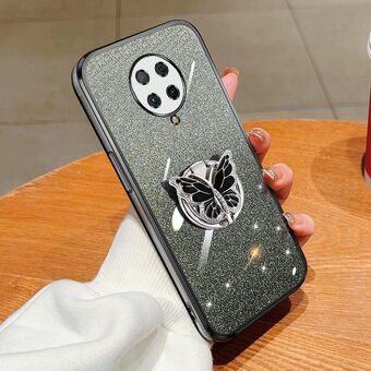 For Redmi K30 Pro Plated Gradient Glitter Butterfly Holder TPU Phone Case(Black)